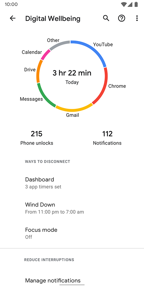 The Digital Wellbeing dashboard is a collection of tools that help users: